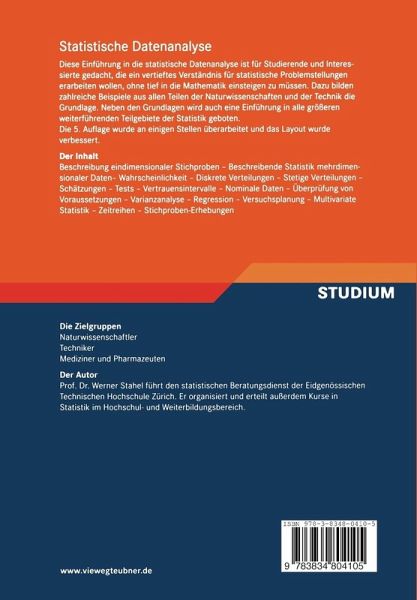 Diese Einführung in die statistische Datenanalyse ist für Studierende und Interessierte gedacht, die ein vertieftes Verständnis für statistische Problemstellungen erarbeiten wollen, ohne tief in die Mathematik einsteigen zu müssen. Dazu bilden zahlreiche Beispiele aus allen Teilen der Naturwissenschaften und der Technik die Grundlage. Neben den Grundlagen wird auch eine Einführung in alle größeren weiterführenden Teilgebiete der Statistik geboten.