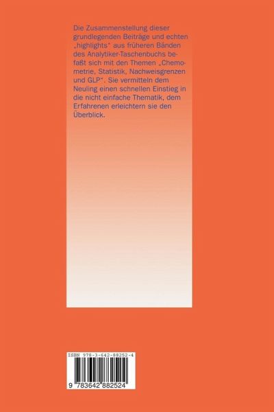 Die Zusammenstellung dieser grundlegenden Beiträge und echten "highlights" aus früheren Bänden des Analytiker-Taschenbuchs befaßt sich mit den Themen "Chemometrie, Statistik, Nachweisgrenzen und GLP". Sie vermitteln dem Neuling einen schnellen Einstieg in die nicht einfache Thematik, dem Erfahrenen erleichtern sie den Überblick.