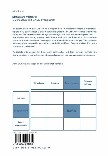 Bei der Planung und Auswertung naturwissenschaftlicher und technischer Versuche sowie sozialwissenschaftlicher Untersuchungen werden wesentlich statistische Verfahren ein gesetzt. Zu einer vollständigen statistischen Untersuchung gehören: 1) Formulierung des Problems und der daraus resultierenden Fragen und Hypothesen, 2) Planung und Beschreibung des Untersuchungsplans, 3) Ausführung des Experiments bzw. der statistischen Erhebung, 4) Tabellierung und Beschreibung der empirischen Ergebnisse, Berechnung von Kennwerten, 5) Schlußfolgerungen und Interpretationen. Insbesondere mit den Schritten (4) und (5) ist oft ein erheblicher Rechenaufwand verbun den, der sich mit Papier und Bleistift oft nur mühsam abwickeln läßt. Dieser kann sinnvoll von einem Home-oder Personal-Computer übernommen werden. Einfach zu bedienende Computerprogramme erledigen heute in Bruchteilen von Sekun den, was früher längere Arbeit in Anspruch nahm. Zudem wird der Anwender von Pro blemen der numerischen Mathematik verschont und kann sich an deren Stelle wesent licheren Aspekten der Methode widmen. Die Zusammenarbeit mit verschiedenen Anwendern hat gezeigt, daß es möglich ist, ein Verständnis statistischer Verfahren auch bei Nicht-Statistikern zu erwecken. Dabei muß nur die Kenntnis einfacher mathematischer Begriffe sowie der wichtigsten Methoden der Statistik vorausgesetzt werden.