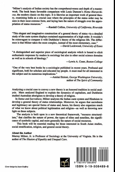 Status and Sacredness provides a new theory of status and sacral relationships and a provocative reinterpretation of the Indian caste system and Hinduism. Milner shows how in India and many other social contexts status is a key resource, and that sacredness can be usefully understood as a special form of status. By analysing the nature of this resource Milner is able to provide powerful explanations of the key features of the social structure, culture, and religion. He argues against the widely held view that the Indian caste system is best understood as a unique cultural development, demonstrating that many of the seemingly exotic features are variations on themes common to other societies. Milner's analysis is rooted in a new theoretical framework called "resource structuralism" that helps to clarify the nature and significance of power and symbolic capital. The book thus provides a bold new analysis of India, an innovative approach to the analysis of religion, and an important contribution to social theory.