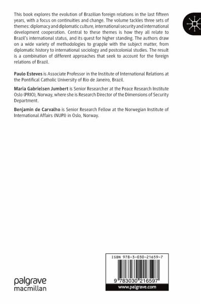 This book explores the evolution of Brazilian foreign relations in the last fifteen years, with a focus on continuities and change. The volume tackles three sets of themes: diplomacy and diplomatic culture, international security and international development cooperation. Central to these themes is how they all relate to Brazil's international status, and its quest for higher standing. The authors draw on a wide variety of methodologies to grapple with the subject matter, from diplomatic history to international sociology and postcolonial studies. The result is a combination of different approaches that seek to account for the foreign relations of Brazil.