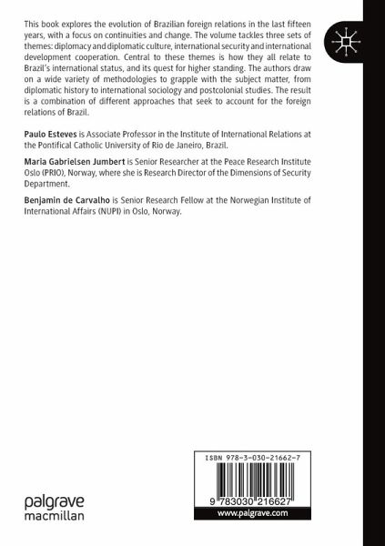 This book explores the evolution of Brazilian foreign relations in the last fifteen years, with a focus on continuities and change. The volume tackles three sets of themes: diplomacy and diplomatic culture, international security and international development cooperation. Central to these themes is how they all relate to Brazil's international status, and its quest for higher standing. The authors draw on a wide variety of methodologies to grapple with the subject matter, from diplomatic history to international sociology and postcolonial studies. The result is a combination of different approaches that seek to account for the foreign relations of Brazil.