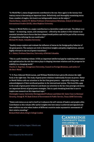 Rising powers such as Brazil, China, India, Russia, and Turkey are increasingly claiming heightened profiles in international politics. Although differing in other respects, rising states have a strong desire for recognition and respect. This pioneering volume on status features contributions that develop propositions on status concerns and illustrate them with case studies and aggregate data analysis. Four cases are examined in depth: the United States (how it accommodates rising powers through hierarchy), Russia (the influence of status concerns on its foreign policy), China (how Beijing signals its status aspirations), and India (which has long sought major power status). The authors analyze status from a variety of theoretical perspectives and tackle questions such as: How do states signal their status claims? How are such signals perceived by the leading states? Will these status concerns lead to conflict, or is peaceful adjustment possible?