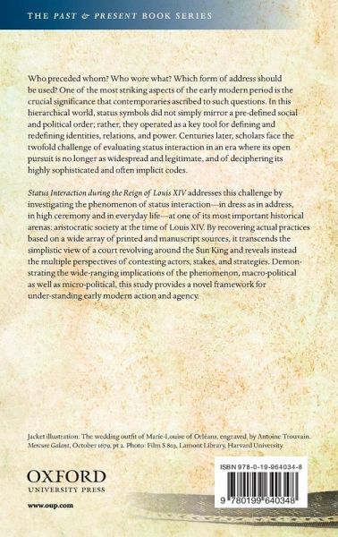 * Acknowledgments * List of Abbreviations * Introduction * 1: The Marriage of 1679: High Ceremonies as Multifaceted Status Interactions * 2: The affaire des siÿges: The Anatomy of Ceremonial Crisis * 3: The Battles of the Mantles: Ceremonial Gear and Status Conflict * 4: To Wear or Not To Wear? Mantled Visits in the Early Eighteenth Century * 5: The Duality of Service: Between Honour and Humiliation, between Primary and Secondary Functions * 6: Epistolary Ceremonial: Manuscript Correspondence as Unmediated Status Interaction * Conclusion * Appendix I: The Royal House of Bourbon, 1643-1715 * Appendix II: The CondÃ(c)-Gourville Correspondence * Appendix III: Train-Length and Train-Bearing in Bourbon Funerary Services at Saint-Denis and at Notre Dame, 1643-1715 * Appendix IV: A Schematised Hierarchy of Free-Address Forms * Bibliography * Index
