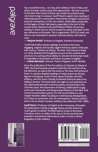 'Geoff Ward offers astute readings of several of the most engaging, original, and socially cogent American poets of the past half-century. Statutes of Liberty: The New York School of Poets is arichly detailed and thoughtful account of the contexts and practices of a writing whose ability to reinvent its forms has made it invaluable to the present and future of poetry in English.'- Charles Bernstein, Director, Poetics Program, SUNY-Buffalo