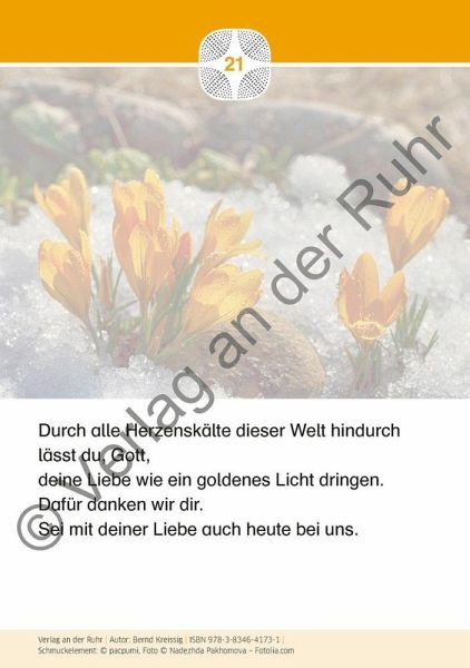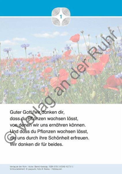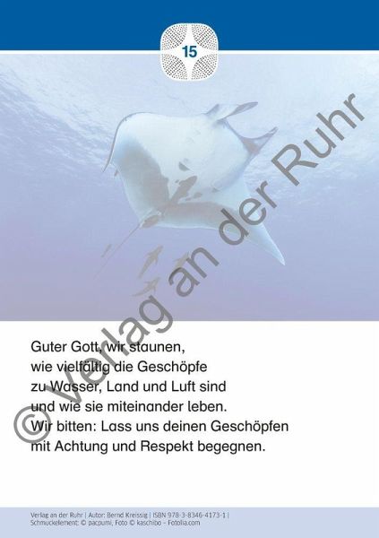 Unterrichtsmaterial für Lehrer an Grundschulen und weiterführenden Schulen, Fach: evangelische und katholische Religionslehre, Klasse 1-7 +++ Lasset uns staunen! Es ist nicht immer leicht, Glauben und Gebet angemessen im freien Raum der Schule zu verankern. Mit diesen Gebetskarten möchten wir Ihnen einen Schlüssel an die Hand geben, Kinder und Jugendliche für das Beten zu gewinnen. Wie das gelingen kann? Über die Wunder der Schöpfung und das Staunen darüber. Die 40 Gebetskarten in A5 zeigen auf der einen Seite ein Naturfoto - eindrucksvolle Aufnahmen, z. B. von Polarlichtern, Korallenriffen oder einem Wirbelsturm. Auf der anderen Seite der Karte ist das Foto nochmals im Hintergrund zu sehen, diesmal zusammen mit einem passenden Gebet. Die kurzen und kindgerechten Worte lassen sich prima vorlesen und dann in der Klassengemeinschaft in Bezug zum Foto interpretieren. Schnell kommen Fragen auf: Wie entsteht überhaupt ein Polarlicht? Wann kann man es sehen? In dem 8-seitigen Lehrer-Begleitheft finden Sie kurze Erklärtexte zu den Fotos- daraus ergeben sich schnell vielfältige Gesprächsanlässe. Außer im Religionsunterricht können Sie die Bildkarten sehr schön für die Kinder- und Jugendarbeit im Kommunions- oder Konfirmandenunterricht einsetzen. Die Gebete sind allesamt so formuliert, dass sie auch wunderbar konfessionsübergreifend funktionieren.