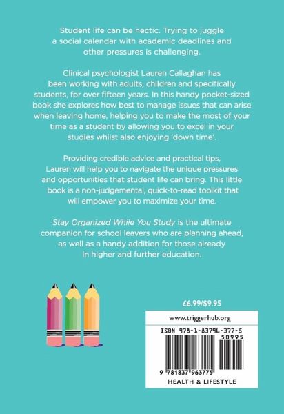 Prioritizing your studies, social life and everything in between – all while looking after yourself – can be tricky! >/p> Complemented by insights from real students, the book is easy-to-read, convenient to carry, and a valuable toolkit for sustained confidence and structure in your studies. Stay Organized While You Study is the ultimate companion for school-leavers planning ahead for university, as well as a handy addition for those already in higher and further education.