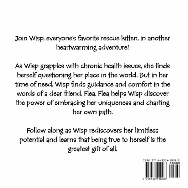 Join Wisp, everyone's favorite rescue kitten, in another heartwarming adventure! As Wisp grapples with chronic health issues, she finds herself questioning her place in the world. Discouraged by setbacks, she retreats out of fear she'll never measure up. But in her time of need, Wisp finds guidance and comfort in the words of her dear friend, Flea. Flea reminds Wisp that being different is not a flaw but a badge of courage. With Flea's help, Wisp discovers the power of embracing her uniqueness and charting her own path. Through poignant prose and captivating illustrations, Stay Stinky celebrates the beauty of resilience. Follow along with Wisp as she rediscovers her limitless potential and learns that being true to herself is the greatest gift of all.
