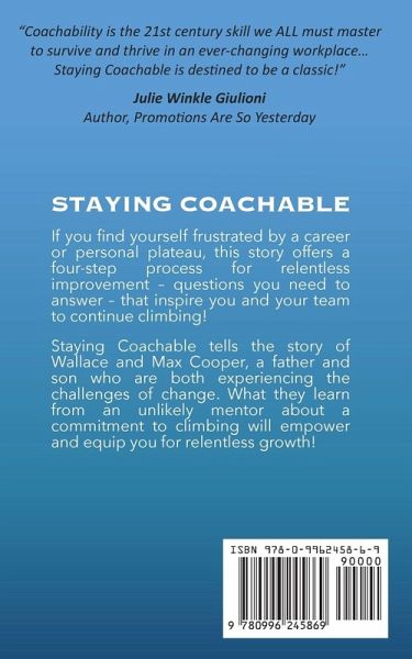 ¿ A proven process to master self-improvement! ¿ If you find yourself frustrated by a career or personal plateau, this story offers a four-step process for relentless improvement - FOUR QUESTIONS you need to answer - that inspire you and your team to continue climbing! Staying Coachable tells the story of Wallace and Max Cooper, a father and son who are both experiencing the challenges of change. What they learn from an unlikely mentor about a commitment to climbing will empower and equip you for relentless growth! Staying Coachable is about wanting to be better... and being willing to change... As a coach for two decades, one of the greatest struggles I had was getting talented athletes to accept feedback and apply the ideas I would share. I was always searching for HOW to get our teammates to stay hungry - to change their mindset so they could change their behaviors - and ultimately enjoy better results. This personal development book offers you that valuable recipe! Building a culture of commitment is FAR MORE IMPORTANT than the strategy you are focused on... because once you and your team understand the questions that inspire relentless improvement, you will be amazed at their ability to climb!