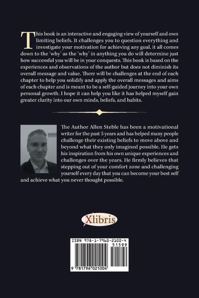 This book is an interactive and engaging view of yourself and own limiting beliefs. It challenges you to question everything and investigate your motivation for achieving any goal, it all comes down to the 'why' as the 'why' in anything you do will determine just how successful you will be in your conquests. This book is based on the experiences and observations of the author but does not diminish its overall message and value. There will be challenges at the end of each chapter to help you solidify and apply the overall messages and aims of each chapter and is meant to be a self-guided journey into your own personal growth. I hope it can help you like it has helped myself gain greater clarity into our own minds, beliefs, and habits.