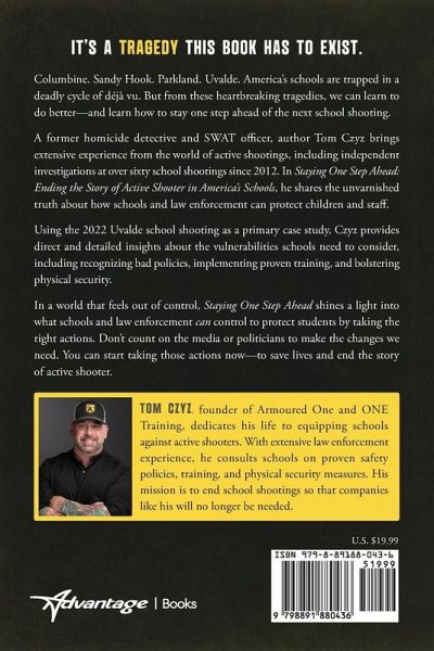 TOM CZYZ, founder of Armoured One and ONE Training, dedicates his life to equipping schools against active shooters. With extensive law enforcement experience, he consults schools on proven safety policies, training, and physical security measures. His mission is to end school shootings so that companies like his will no longer be needed.