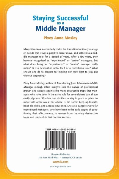 Many librarians successfully make the transition to library manager, decide that it was a positive career move, and settle into a middle manager role for a period of years. After a few years they become recognized as experienced or senior managers. But what does being an experienced or 'senior' manager really mean? Is it a destination unto itself or a transitional role? What should one do to prepare for moving on? How best to stay put without stagnating? Pixey Anne Mosley, author of Transitioning from Librarian to Middle Manager (2004) offers insights into the nature of professional growth, and caveats against the many destructive traps that managers who have been in the same role for several years can all too easily slip into. Essential reading for anyone beyond the salad days of their career, but particularly managers whose advancement has stalled or are in the early stages of questioning their effectiveness.