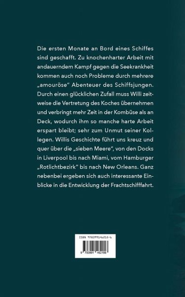 Die ersten Monate an Bord eines Schiffes sind geschafft. Zu knochenharter Arbeit mit andauerndem Kampf gegen die Seekrankheit kommen auch noch Probleme durch mehrere "amouröse" Abenteuer des Schiffsjungen. Durch einen glücklichen Zufall muss Willi zeitweise die Vertretung des Koches übernehmen und verbringt mehr Zeit in der Kombüse als an Deck, wodurch ihm so manche harte Arbeit erspart bleibt; sehr zum Unmut seiner Kollegen. Willis Geschichte führt uns kreuz und quer über die "sieben Meere", von den Docks in Liverpool bis nach Miami, vom Hamburger "Rotlichtbezirk" bis nach New Orleans. Ganz nebenbei ergeben sich auch interessante Einblicke in die Entwicklung der Frachtschifffahrt.