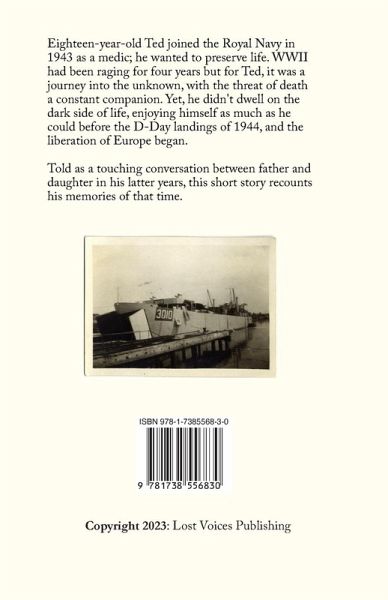 Eighteen-year-old Ted joined the Royal Navy in 1943 as a medic; he wanted to preserve life. WWII had been raging for four years but for Ted, it was a journey into the unknown, with the threat of death a constant companion. Yet, he didn't dwell on the dark side of life, enjoying himself as much as he could before the D-Day landings of 1944, and the liberation of Europe began. Told as a touching conversation between father and daughter in his latter years, this short story recounts his memories of that time.