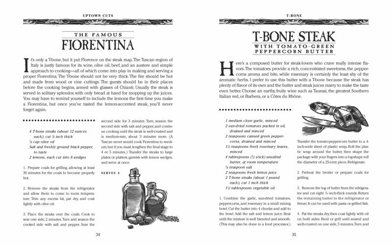 Introduction: Great Steak About Steak (Making Buying and Cooking Steak) Uptown Cuts (Tenderloin T-Bone Porterhouse Strip or Top Loin Rib Rib-Eye Sirloin) Downtown Cuts (Shuck Round/Eye Round/Rump Flank Skirt Crosstown Cuts) All Around the Town (Before the Steak After the Steak Mail-Order Steak)