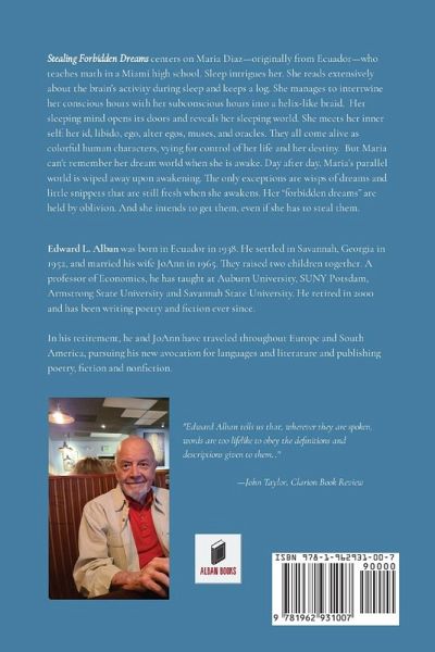 Maria Diaz, originally from Ecuador, teaches math in a Miami high school. She is intellectual, loves poetry and likes music-from classical to Andean, to tangos-and suffers from insomnia. Sleep intrigues her. She does the math and figures that over a sixty-year span we sleep the staggering sum of twenty years. Where does all that time go? Is it a waste? Or does it have a hidden redeeming value? Finding answers to these questions becomes her quest. She reads extensively about the brain's activity during sleep, she keeps a log of the few brief dreams that she remembers and manages to intertwine her conscious hours with her subconscious hours into a helix-like braid of her life, which she presents in the form of a novel. Her sleeping mind opens its doors and reveals her sleeping world. She meets her inner self: her id, libido, ego, alter egos, muses, and oracles. They all come alive as colorful human characters, vying for control of her life and her destiny. Maria's Libido is a sexy look-alike who thinks it's high time for Maria to lose her virginity. Her sassy Literary Muse advocates career change from teaching and mathematics. Her oracles are alter egos personified as older gentlemen who guide her in matters of philosophy. Every night, Maria is at the center of this seemingly schizophrenic reality filled with laughter, tears, adulation, and scorn. It is a wonderful world that she comes to love, but, as with all humans, Maria can't remember her dream world when she is awake. Day after day, Maria's parallel world is wiped away upon awakening. The only exceptions are wisps of dreams and little snippets that are still fresh when she awakens. But the bulk of her sleeping hours is off limits. This is where her treasures, her "forbidden dreams" are held by oblivion. And she intends to get them, if she has to steal them. It took her ten years to do it. The result is this work. Maria comes of age in many ways, she matures philosophically, she becomes sure of her convictions, and she lives her life by her own precepts. She shares with us how the mind at night interphases with the conscious world. We do relive our daytime life by night, and our night hours in turn do influence the decisions we make in the real world. But it happens so subtly, it is almost imperceptible. This is what we learn from her experiences.