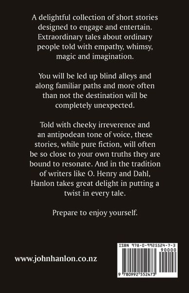 A delightful collection of short stories designed to engage and entertain. Extraordinary tales about ordinary people told with empathy, whimsy, magic and imagination. You will be led up blind alleys and along familiar paths and more often than not the destination will be completely unexpected. Told with cheeky irreverence and an antipodean tone of voice, these stories, while pure fiction, will often be so close to your own truths they are bound to resonate. And in the tradition of writers like O. Henry and Dahl, Hanlon takes great delight in putting a twist in every tale. Prepare to enjoy yourself. About the Author John Hanlon is a Eurasian who was raised variously in New Zealand, Malaya, Singapore and Australia. In the early 1970s he accidentally became a New Zealand pop star. A few hit songs and a significant number of awards followed before he chose to seek a quieter life. He then spent three decades as a Creative Director in Australia, before returning to live in New Zealand to explore less certain creative pursuits like writing fiction.