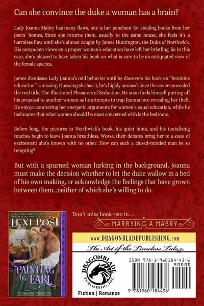 Can she convince the duke a woman has a brain? Lady Joanna Mabry has many flaws, one is her penchant for stealing books from her peers' homes. Since she returns them, usually to the same house, she feels it's a harmless flaw until she's almost caught by James Huntington, the Duke of Northwick. His outspoken views on a proper woman's education have left her bristling. So in this case, she's pleased to have taken his book on what is sure to be an antiquated view of the female species. James dismisses Lady Joanna's odd behavior until he discovers his book on "feminine education" is missing. Guessing she has it, he's highly amused since the cover concealed the real title, The Illustrated Pleasures of Seduction. He soon finds himself putting off his proposal to another woman as he attempts to trap Joanna into revealing her theft. He enjoys countering her energetic arguments for women's equal education, while he insinuates that what women should be most concerned with is the bedroom. Before long, the pictures in Northwick's book, his quiet hints, and his tantalizing touches begin to leave Joanna breathless. Worse, their debates bring her to a state of excitement she's known with no other. How can such a closed-minded man be so tempting? But with a spurned woman lurking in the background, Joanna must make the decision whether to let the duke wallow in a bed of his own making, or acknowledge the feelings that have grown between them...neither of which she's willing to do. Marrying a Mabry Stealing the Duke Painting the Earl Revealing the Viscount