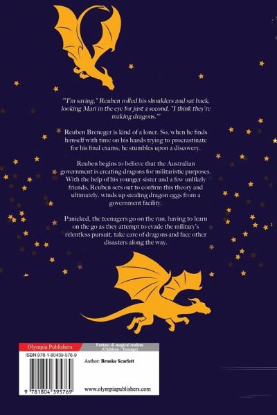 '"I'm saying," Reuben rolled his shoulders and sat back, looking Mari in the eye for just a second, "I think they're making dragons."' Reuben Breneger is kind of a loner. So, when he finds himself with time on his hands trying to procrastinate for his final exams, he stumbles upon a discovery. Reuben begins to believe that the Australian government is creating dragons for militaristic purposes. With the help of his younger sister and a few unlikely friends, Reuben sets out to confirm this theory and ultimately, winds up stealing dragon eggs from a government facility. Panicked, the teenagers go on the run, having to learn on the go as they attempt to evade the military's relentless pursuit, take care of dragons and face other disasters along the way.
