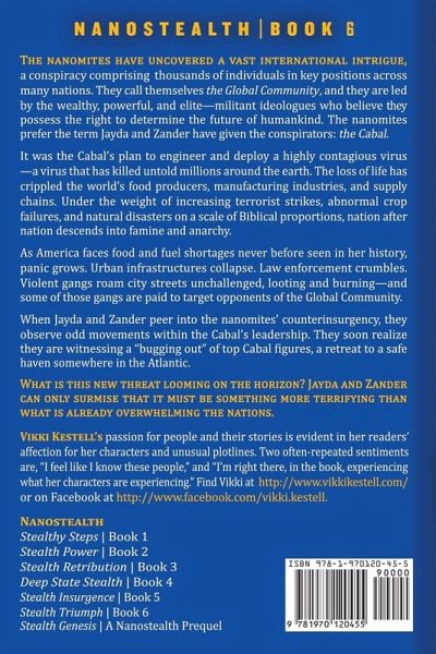 The nanomites have uncovered a vast international intrigue, a conspiracy comprising thousands of individuals in key positions across many nations. They call themselves the Global Community, and they are led by the wealthy, powerful, and elite-militant ideologues who believe they possess the right to determine the future of humankind. The nanomites prefer the term Jayda and Zander have given the conspirators: the Cabal. Jayda Cruz, members of the Global Community speak of themselves in lofty, righteous terms; however, the noun "cabal" means a plot or scheme with treacherous objectives. "Cabal" more accurately expresses the Global Community's agenda as well as their methodologies. It was the Cabal's plan to engineer and deploy a highly contagious virus-a virus that has killed untold millions around the earth. The loss of life has crippled the world's food producers, manufacturing industries, and supply chains. Under the weight of increasing terrorist strikes, abnormal crop failures, and natural disasters on a scale of Biblical proportions, nation after nation descends into famine and anarchy. As America faces food and fuel shortages never before seen in her history, panic grows. Urban infrastructures collapse. Law enforcement crumbles. Violent gangs roam city streets unchallenged, looting and burning-and some of those gangs are paid to target opponents of the Global Community. When Jayda and Zander peer into the nanomites' counterinsurgency activities, they observe odd movements within the Cabal's leadership. They soon realize that they are witnessing a "bugging out" of top Cabal figures, a retreat to a safe haven somewhere in the Atlantic. What is this new threat looming on the horizon? Jayda and Zander can only surmise that it must be something more terrifying than what is already overwhelming the nations.