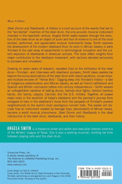 Steel Drums and Steelbands: A History is a vivid account of the events that led to the "accidental" invention of the steel drum: the only acoustic musical instrument invented in the 20th century. Angela Smith walks readers through the evolution of the steel drum from an object of scorn and tool of violence to one of the most studied, performed, and appreciated musical instruments today. Smith explores the development of the modern steelband, from its roots in African slavery in early Trinidad to the vast array of experiments in technological innovation and to the current explosion of steelbands in American schools. The book offers insights directly from major contributors of the steelband movement with sections devoted exclusively to pioneers and innovators. Drawing on seven years of research, repeated trips to the birthplace of the steel drum, Trinidad, and interviews with steelband pioneers, Smith takes readers far beyond the sunny associations of the steel drum with island vacations, cruise ships, and multiple encores of "Yellow Bird." Digging deep into Trinidad’s history—a tale of indigenous extermination and African slavery, of French settlement and Spanish and British colonialism before mid-century independence—Smith weaves an unforgettable narrative of talking drums, kalinda stick fights, tamboo bamboo bands, iron bands, calypso, Carnival, and the U. S. military. Together, all played major roles in the evolution of today’s steelband and in the panman’s journey from renegade to hero in the steelband’s move from the panyards of Trinidad’s poorest neighborhoods to the world’s most prestigious concert halls. The reader will discover how an instrument created by teenage boys, descendants of African slaves, became a world musical phenomena. Steel Drums and Steelbands is the ideal introduction to the steel drum, steelbands, and their history.