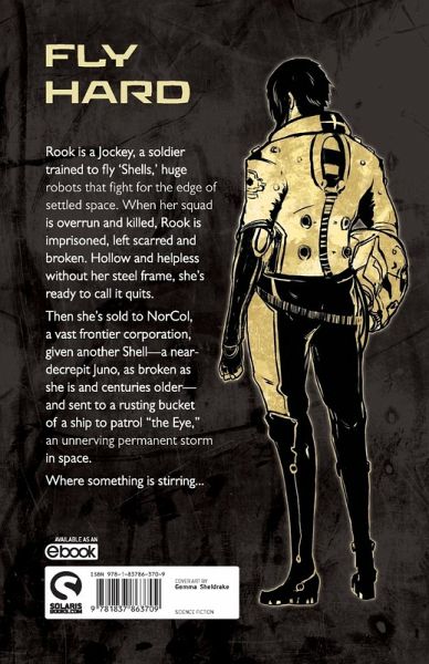 Epic tale of giant-robot battles, built around a personal story of redemption and healing. Fly Hard. Rook is a jockey, a soldier trained and modified to fly `shells,' huge robots that fight for the outer regions of settled space. When her shell is destroyed and her squad killed, Rook is imprisoned, left stranded, scarred and broken. Hollow and helpless without her steel frame, she's ready to call it quits. When her cohort of prisoners are sold into indenture to NorCol, a vast frontier corporation, Rook's given another shell - a near-decrepit Juno, as broken as she is and decades older - and sent to a rusting bucket of a ship on the end of known space to patrol something called ""the Eye,"" a strange, unnerving permanent storm in space. But they're not alone.