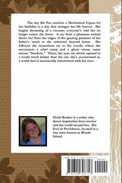 The day Kit Pen receives a Mechanical Equus for her birthday is a day that changes her life forever. She begins dreaming of a creature everyone's told her no longer exists: the horse. A cry from a phantom animal draws her from the edges of the grazing pastures of her father's ranch to the unknown beyond home. She follows the mysterious cry to the woods, where she encounters a rebel camp and a ghost whose name means "freedom." There, her eyes are slowly opened to a world much darker than the one she is accustomed to, a world that is inextricably intertwined with her own.