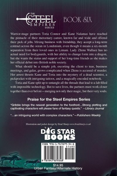 Warrior-mage partners Toria Connor and Kane Nalamas have reached the pinnacle of their mercenary career, known far and wide and offered their pick of jobs. Mixing business with friendship, they accept a long-term contract across the ocean in Londinium, even though it means a six-month separation from their loved ones in Limani. Lady Zhinu Wallace has no actual need for bodyguards, with her ability to change form into a dragon, but she wants the status and support of her long-time friends as she makes her official debut into British noble society. What should be a simple job, escorting the client to teas, business meetings, and galas, grows complicated when Zhinu is accused of murder. Her arrest thrusts Kane and Toria into the mystery of a dead scientist, a pickpocket with intriguing tattoos, and a magically encoded notebook. Toria and Kane split up to untangle all the threads that lead to a lab filled with impossible technology. But to save lives, the partners must work closer together than ever before-merging not only their magic, but their very souls