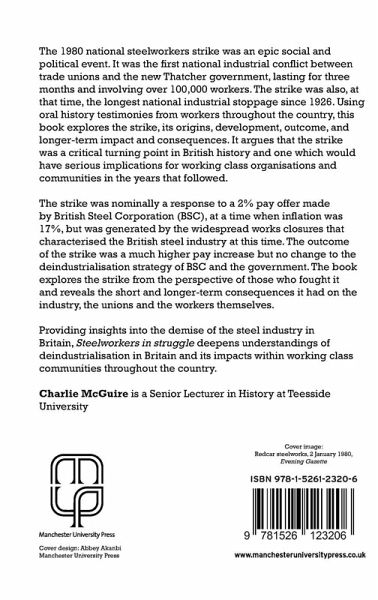 The 1980 national steelworkers strike was an epic social and political event. It was the first national industrial conflict between trade unions and the new Thatcher government, lasting for three months and involving over 100,000 workers. The strike was also, at that time, the longest national industrial stoppage since 1926. Using oral history testimonies from workers throughout the country, this book explores the strike, its origins, development, outcome, and longer-term impact and consequences. It argues that the strike was a critical turning point in British history and one which would have serious implications for working class organisations and communities in the years that followed. The strike was nominally a response to a 2% pay offer made by British Steel Corporation (BSC), at a time when inflation was 17%, but was generated by the widespread works closures that characterised the British steel industry at this time. The outcome of the strike was a much higher pay increase but no change to the deindustrialisation strategy of BSC and the government. The book explores the strike from the perspective of those who fought it and reveals the short and longer-term consequences it had on the industry, the unions and the workers themselves. Providing insights into the demise of the steel industry in Britain, Steelworkers in struggle deepens understandings of deindustrialisation in Britain and its impacts within working class communities throughout the country.