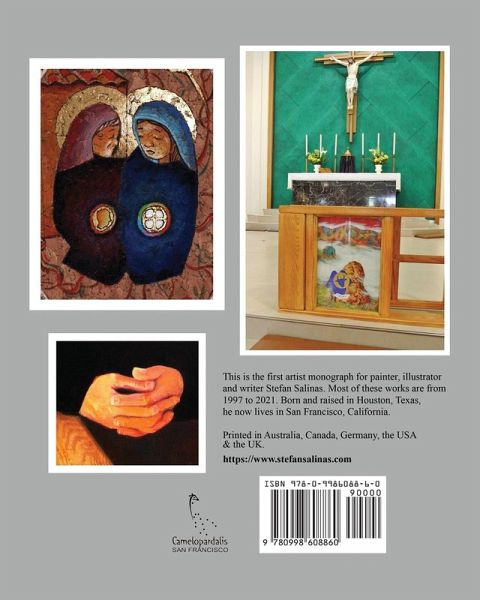 Artist monograph of the work of Stefan Salinas, mostly from 1997 to 2021. It includes a chapter on early life and influences, followed by samples of paintings, works on paper, works in churches, brief descriptions of his books, and examples of his graphics.