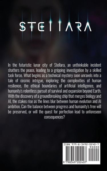 The futuristic lunar city of Stellara, an unthinkable incident shutters the peace, leading to a gripping investigation by a skilled task force. What begins as a technical mystery soon unravels into a tale of cosmic intrigue, exploring the complexities of human resilience, the ethical boundaries of artificial intelligence, and humanity's relentless pursuit of survival and expansion beyond Earth. With the discovery of a groundbreaking chip that merges biology and AI, the stakes rise as the lines blur between human evolution and AI ambition. Can the balance between progress and humanity's free will be preserved, or will the quest for perfection lead to unforeseen consequences?