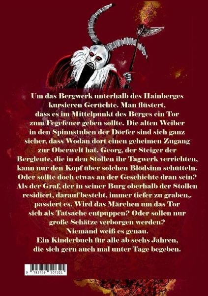 Um das Bergwerk unterhalb des Hainberges kursieren Gerüchte. Man flüstert, dass es im Mittelpunkt des Berges ein Tor zum Fegefeuer geben sollte. Die alten Weiber in den Spinnstuben der Dörfer sind sich ganz sicher, dass Wodan dort einen geheimen Zugang zur Oberwelt hat. Georg, der Steiger der Bergleute, die in den Stollen ihr Tagwerk verrichten, kann nur den Kopf über solchen Blödsinn schütteln. Oder sollte doch etwas an den Geschichten dran sein? Als der Graf, der in seiner Burg oberhalb der Stollen residiert, darauf besteht, immer tiefer zu graben, passiert es. Wird das Märchen um das Tor sich als Tatsache entpuppen? Oder sollen nur große Schätze verborgen werden? Niemand weiß es genau. Ein Kinderbuch für alle ab sechs Jahren, die sich gern auch mal unter Tage begeben.