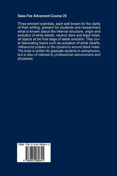 Three eminent scientists, each well known for the clarity of their writing, present for students and researchers what is known about the internal structure, origin and evolution of White Dwarfs, Neutron Stars and Black Holes, all objects at the final stage of stellar evolution. They cover fascinating topics such as pulsation of white dwarfs, millisecond pulsars or the dynamics around black holes. The book is written for graduate students in astrophysics, but is also of interest to professional astronomers and physicists.