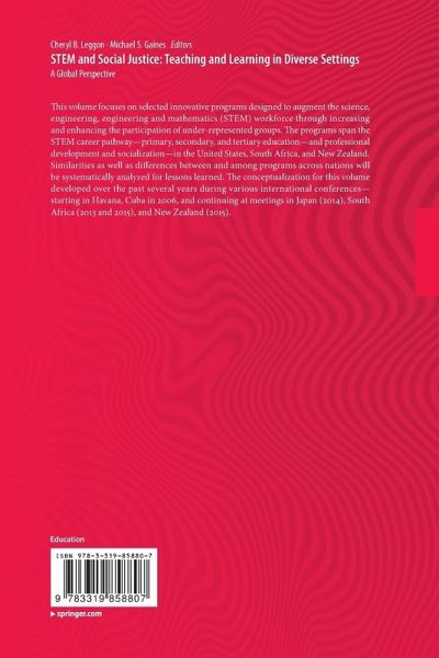 This volume focuses on selected innovative programs designed to augment the science, engineering, engineering and mathematics (STEM) workforce through increasing and enhancing the participation of under-represented groups. The programs span the STEM career pathway-primary, secondary, and tertiary education-and professional development and socialization-in the United States, South Africa, and New Zealand. Similarities as well as differences between and among programs across nations will be systematically analyzed for lessons learned. The conceptualization for this volume developed over the past several years during various international conferences-starting in Havana, Cuba in 2006, and continuing at meetings in Japan (2014), South Africa (2013 and 2015), and New Zealand (2015).