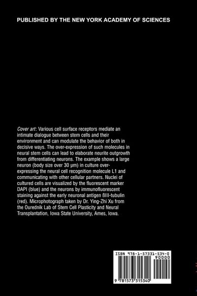 Cover art Various cell surface receptors mediate an intimate dialogue between stem cells and their environment and can modulate the behavior of both in decisive ways. The over-expression of such molecules in neural stem cells can lead to elaborate neurite outgrowth from differentiating neurons. The examples shows a large neuron (body size over 30 um) in culture over-expressing the neural cell recognition molecule L1 and communicating with other cellular partners. Nuclei of cultured cells are visualized by the fluorescent marker DAPI (blue) and the neurons by immunofluorescent staining against the early neuronal antigen BIII-tubulin (red). Microphotograph taken by Dr. Ying-Zhi Xu from the Ourednik Lab of Stem Cell Plasticity and Neural Transplantation, Iowa State University, Ames, Iowa.