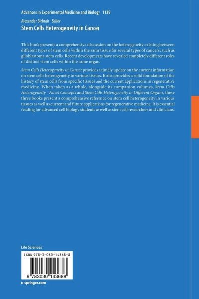 This book presents a comprehensive discussion on the heterogeneity existing between different types of stem cells within the same tissue, for several types of cancers, e.g. glioblastoma stem cells. Recent developments have revealed completely different roles of distinct stem cells within the same organ. Thus, Stem Cells Heterogeneity in Cancer provides a timely update us on the current information on stem cells heterogeneity in various tissues. It also provides a solid foundation of the history of stem cells from specific tissues and the current applications of this knowledge in regenerative medicine. When taken as a whole, alongside its companion volumes Stem Cells Heterogeneity - Novel Concepts, and Stem Cells Heterogeneity in Different Organs, these three books present a comprehensive reference on stem cell heterogeneity in various tissues and current and future applications for regenerative medicine. It is essential reading for advanced cell biology students as well as researchers in stem cells and clinicians.