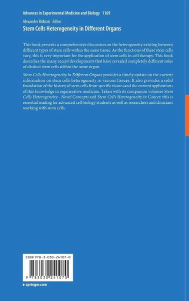 This book presents a comprehensive discussion on the heterogeneity existing between different types of stem cells within the same tissue. As the functions of these stem cells vary, this is very important for the application of stem cells in cell therapy. This book describes the many recent developments that have revealed completely different roles of distinct stem cells within the same organ.