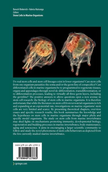 Do real stem cells and stem cell lineages exist in lower organisms? Can stem cells from one organism parasitize the soma and/or the germ line of conspecifics? Can differentiated cells in marine organisms be re-programmed to regenerate tissues, organs and appendages through novel de-differentiation, transdifferentiation, or re-differentiation processes, leading to virtually all three germ layers, including the germline? The positive answers to above questions open a new avenue in stem cell research: the biology of stem cells in marine organisms. It is therefore unfortunate that while the literature on stem cell from terrestrial organisms is rich and expanding at an exponential rate, investigations on marine organisms' stem cells are very limited and scarce.