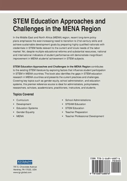 In the Middle East and North Africa (MENA) region, recent long-term policy plans emphasize the ever-increasing need to transition to 21st-century skills and achieve sustainable development goals by preparing highly qualified nationals with credentials in STEM fields relevant to the current and future needs of the labor market. Yet, despite multiple educational reforms and substantial resources, national and international indicators of student performance still demonstrate insignificant improvement in MENA students' achievement in STEM subjects. STEM Education Approaches and Challenges in the MENA Region contributes to the existing STEM literature by exploring factors that influence student participation in STEM in MENA countries. The book also identifies the gaps in STEM education research in MENA countries and presents the current practices and challenges. Covering key topics such as gender equity, school administration, and education systems, this premier reference source is ideal for administrators, policymakers, researchers, scholars, academicians, practitioners, instructors, and students.