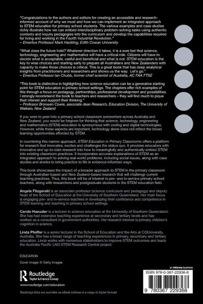 Angela Fitzgerald is an associate professor (science curriculum and pedagogy) and deputy head of the School of Education at the University of Southern Queensland. Her main focus is engaging pre- and in-service teachers in developing their confidence and competence in STEM learning and teaching in primary school settings. Carole Haeusler is a lecturer in science education at the University of Southern Queensland. She has had extensive teaching experience at secondary and tertiary levels and has worked as a consultant in government authorities. Her research interest is primary children's cognition in science. Linda Pfeiffer is a senior lecturer in the School of Education and the Arts at CQUniversity, Australia. She has a broad range of teaching experiences in primary, secondary and tertiary education. Linda works with numerous stakeholders to improve STEM outcomes and leads the Australia Pacific LNG STEM Research Central project.