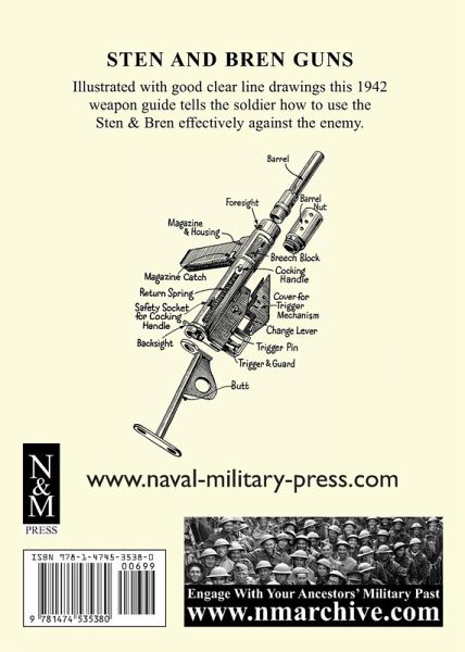 Illustrated with good clear line drawings this 1942 weapon guide tells the soldier how to use the Sten & Bren effectively against the enemy.