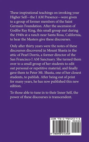 These inspirational teachings on invoking your Higher Self—the I AM Presence—were given to a group of former members of the Saint Germain Foundation. After the ascension of Godfre Ray King, this small group met during the 1940s at a ranch near Santa Rosa, California, to hear the Masters give these discourses. These Masters are beings who once lived on earth but now serve humanity from the realms of Light. Only after thirty years were the notes of these discourses discovered in Mount Shasta in the attic of Pearl Dorris, a former director of the San Francisco I AM Sanctuary. She turned them over to a small group of her students to edit out personal or repetitive material, and finally gave them to Peter Mt. Shasta, one of her closest students, to publish. After being out of print for many years, he has now published this new edition. To those able to tune in to their Inner Self, the power of these discourses is transcendent.