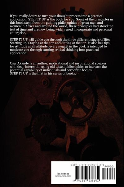 STEP IT UP is a book written to guide and guard people through the different stages of life.It is meant to motivate the reader into becoming a better person in all aspect of there endeavour.