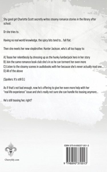 Shy good girl Charlotte Scott secretly writes steamy romance stories in the library after school. Or she tries to. Having no real world knowledge, the spicy bits tend to... fall flat. Then she meets her new stepbrother, Hunter Jackson, who's all too happy to:A.) Tease her relentlessly by dressing up as the hunky lumberjack hero in her story B.) Join the same romance book club she's in so he can torment her even more C.) Listen to the steamy scenes in audiobooks with her because she's never actually read one... D.) All of the above (Spoilers: It's still D.) As if that's not bad enough, now he's offering to give her even more help with her "real life experience" issue and she's really not sure she can handle his teasing anymore... He's still teasing her, right?