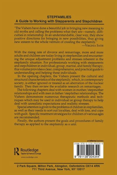 Studies the differences between stepfamilies and nuclear families, and the adjustments and stresses families face as a result of remarriage. Demonstrates numerous therapeutic models with techniques which may be used in individual or group therapy Special attention given to the problems of children in stepfamilies.