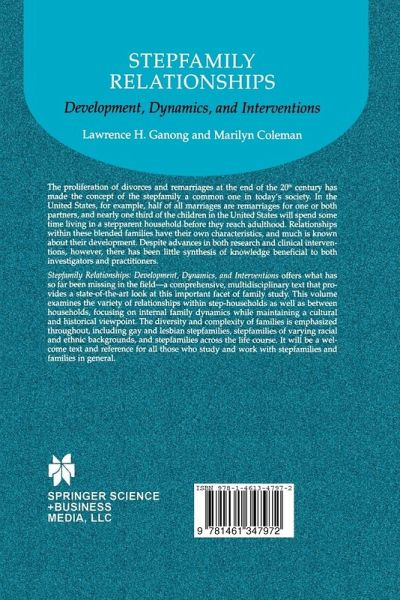 Stepfamily Relationships: Development, Dynamics, and Interventions offers what has so far been missing in the field - a comprehensive, multidisciplinary text that provides a state-of-the-art look at this important facet of family study. This volume examines the variety of relationships within step-households as well as between households, focusing on internal family dynamics while maintaining a cultural and historical viewpoint. The diversity and complexity of families is emphasized throughout, including gay and lesbian stepfamilies, stepfamilies of varying racial and ethnic backgrounds, and stepfamilies across the life course. It will be a welcome text and reference for all those who study and work with stepfamilies and families in general.