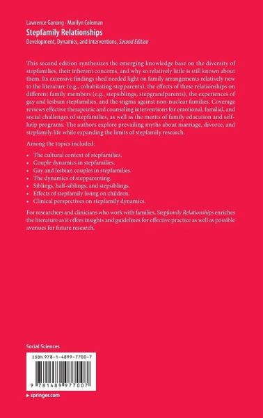 Studying (and Understanding) Stepfamilies.- The Cultural Context of Stepfamilies.- Pathways.- Courtship in Stepfamilies.- Couple Dynamics in Stepfamilies.- Gay and Lesbian Couples in Stepfamilies.- The Dynamics of Parenting in Stepfamilies.- The Dynamics of Stepparenting.- Effects of Stepfamily Living on Children.- Siblings, Half-siblings, and Stepsiblings.- Grandparents and Stepgrandparents.- Clinical Perspectives on Stepfamily Dynamics.- Working with Stepfamilies.- Challenges and Concerns in the Study of Stepfamilies.