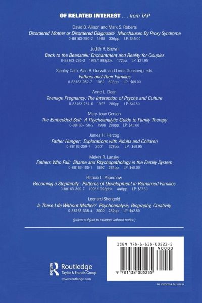 Stanley H. Cath, M.D., is Medical Director of the Family Advisory Service and Treatment Center, Belmont, Massachusetts, and Lecturer in Psychiatry, Harvard Medical School. Dr. Cath is senior coeditor of Father and Child: Developmental and Clinical Perspectives (1982) and Fathers and Their Families (Analytic Press, 1989). Moisy Shopper, M.D., is Clinical Professor of Child Psychiatry and Pediatrics, St. Louis University School of Medicine, and Training and Supervising Analyst (child and adult), St. Louis Psychoanalytic Institute.