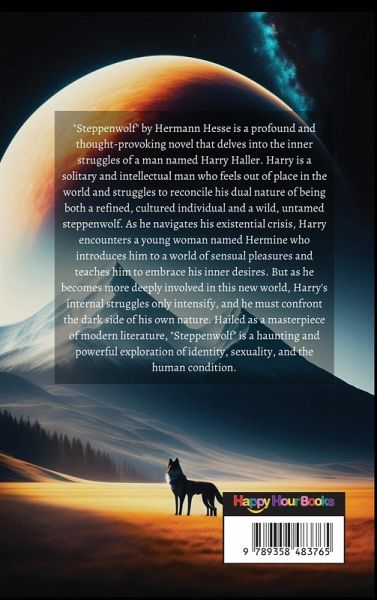 "Steppenwolf" by Hermann Hesse is a profound and thought-provoking novel that delves into the inner struggles of a man named Harry Haller. Harry is a solitary and intellectual man who feels out of place in the world and struggles to reconcile his dual nature of being both a refined, cultured individual and a wild, untamed steppenwolf. As he navigates his existential crisis, Harry encounters a young woman named Hermine who introduces him to a world of sensual pleasures and teaches him to embrace his inner desires. But as he becomes more deeply involved in this new world, Harry's internal struggles only intensify, and he must confront the dark side of his own nature. Hailed as a masterpiece of modern literature, "Steppenwolf" is a haunting and powerful exploration of identity, sexuality, and the human condition.