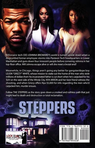 Billionaire tech CEO JOHNNA BROWARD'S world is turned upside down when a disgruntled former employee storms into Panteon Tech headquarters in Lower Manhattan and guns down four innocent people before cornering Johnna in her top-floor office. Will Johnna escape alive or will she meet a brutal end? Meanwhile, in Chicago, things aren't going any better for gangster/dope boy LEJON "GRIZZY" WHITE, whose mission to stake out the home of the man who stole millions of dollars from his incarcerated father is cut short when he's carjacked for his SUV on the west side of the Windy City. NYA MIXON and her best friend witness the shooting, and when Grizzy offers Nya $5,000 for info regarding the men who'd carjacked him, murder ensues. Follow THE STEPPERS as the story goes down a crooked and ruthless today that just might lead to death and destruction or total reclamation.